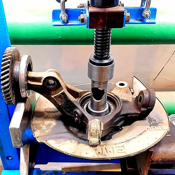 Daugelis servisų bando įvores ar guolius išmušti rankiniais įrankiais, taip rizikuodami pažeisti svirtis ar stebules. Mes dirbame kitaip. Mūsų dirbtuvėse naudojamas galingas 50 tonų hidraulinis presas, kuris leidžia: